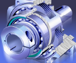 行星式齒輪減速機驅動時,太陽齒、行星齒及內環齒間有六個接觸面均勻承受負載,并依附著內齒軌跡呈360度均布沖擊負荷,可降低齒輪之磨擦更使齒輪無斷裂之虞。行星齒輪浮游式運動,其間隙相當密合,每段減速由階段齒連結,故其體積相對減少,最高效率可達97%。