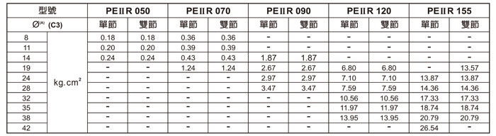 雙節 :15 / 16 / 20 / 25 / 30 / 35 / 40 / 50 / 70 / 81 / 100