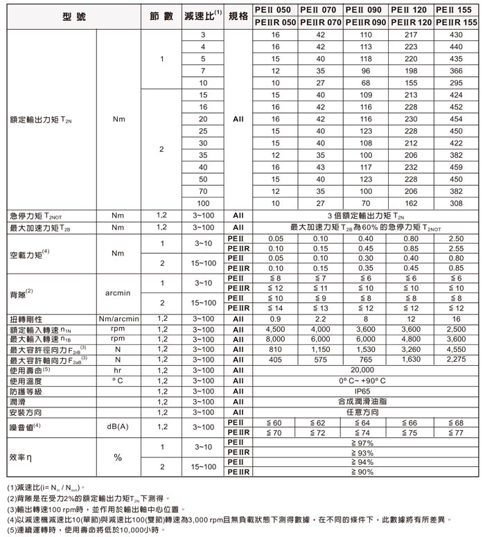 • APEX全新的PⅡ/PⅡR系列為高精度的經濟型伺服馬達減速機,擁有極佳的效能與品質。APEX的創新設計,提供給您最小的尺寸,最輕的重量及最佳的運轉效能。